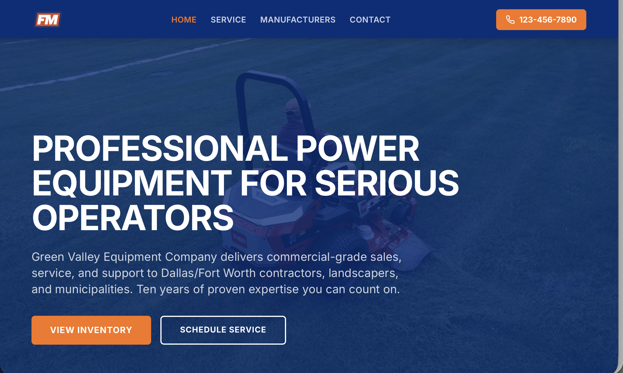 Earthy greens and vibrant orange. A natural, grounded feel for dealers who emphasize reliability and outdoor expertise.
