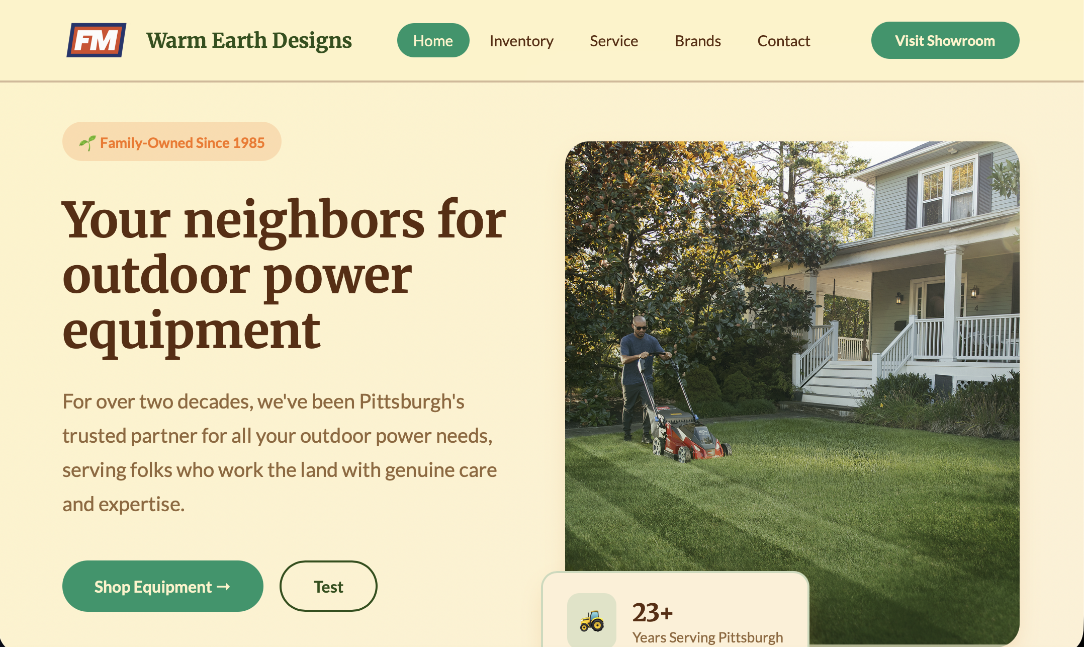 Warm amber and earth tones with friendly typography. Perfect for family-owned dealers with deep community ties.