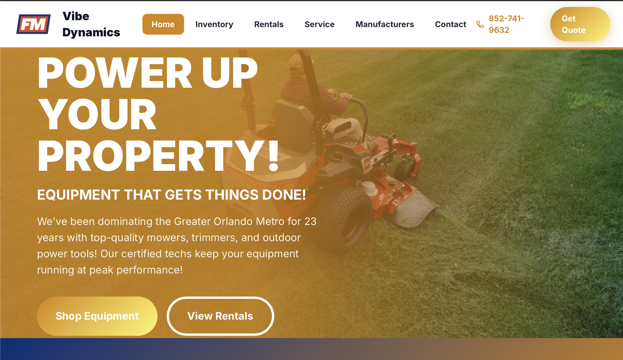 Earthy greens and vibrant orange. A natural, grounded feel for dealers who emphasize reliability and outdoor expertise.
